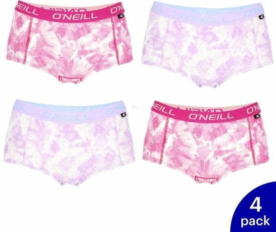 Deze dames shorts, of shortyβs zijn super comfortabel. In deze 4-pack vind j shortyβs met tie dye print in verschillende kleuren. De shortyβs hebben een fijne brede heupband met OβNeill logo en zijn gemaakt van zacht en nauwsluitend stretch katoen. Het gebruikte katoen is 100% organisch geteeld en huidvriendelijk en duurzaam.