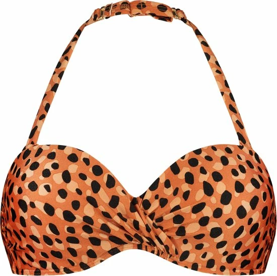 Beachlife Leopard Spots multiway bikinitop met voorgevormde cups en beugel. Dit model staat bekend om de goede pasvorm en support. De bandjes zijn door het handige klik-systeem op meerdere manieren te dragen; als halter, over de schouders, gekruist op de rug en strapless. De top heeft een metalen sluitclip op de rug.