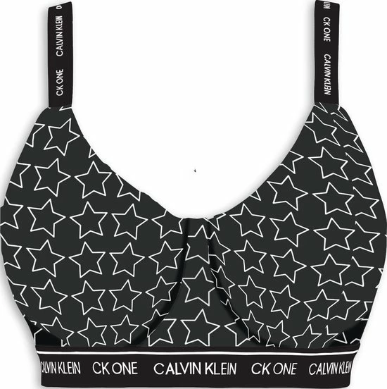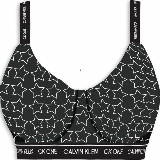 Vul je ondergoed collectie aan met deze toffe bralette uit de Calvin Klein One collectie! In de zwarte bralette met witte sterrenprint voel jij je ongetwijfeld heerlijk. De bralette is voorzien van voorgevormde cups, verstelbare schouderbandjes en een haak- en oogsluiting op de rug. De elastische band onder de borsten zorgt voor voldoende ondersteuning en extra comfort. Combineer de bralette met de bijpassende string!