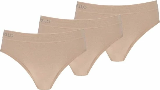 Merk: Apollo Inhoud: 3-pak Type: Slip Geslacht: Vrouw Samenstelling: 80% Katoen 16% Polyamide 4% Elastaan Kenmerken: Uitstekende pasvorm – Naadloos Maten: S- M – L – XL Kleur: Beige