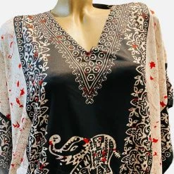 Gloednieuw π Merkloos Kaftan Met Aantrekkoord En Olifantenafbeelding One Size Wit/zwart β€οΈ