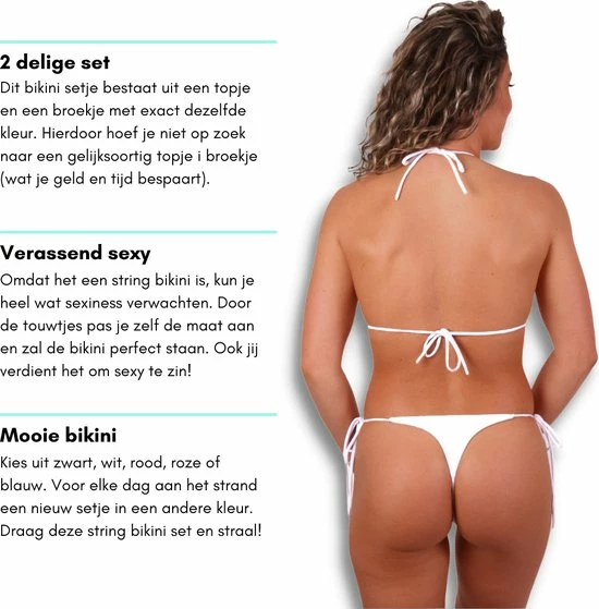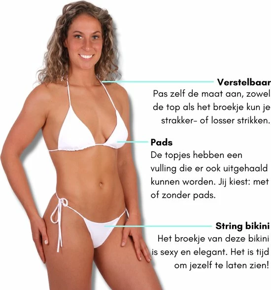 Ook jij verdient het om een prachtige string bikini te hebben en te stralen in de zon. Gewoon doen, want deze bikini heeft geen leeftijdsgrens: iedereen is geschikt om deze bikini te dragen! Of je nu dik, dun, lang of klein bent; het maakt niet uit. Jij gaat je gegarandeerd lekker voelen in deze dames bikini, beloofd.