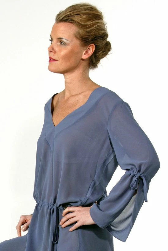 Ook onderaan de mouw is een tunnel met een koordje verwerkt voor een speels effect.