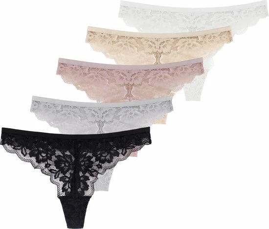 88% Polyamide, 12% Elastomeer: Kanten dames string van Dorina in een 5-pack