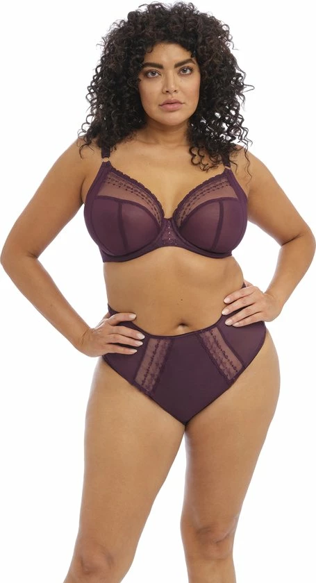 Elomi Matilda serie is niet compleet zonder de hoge slip van Mathilda. In het bordeaux rood met transparantie achterkant en afgewerkt met stippen borduurwerk.