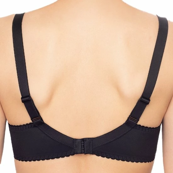 Elegant en betoverend feminien, deze beugel-bh uit de Serenada serie toont de vrouwelijke rondingen op hun best. Het vormt een vol, geaccentueerd decolletΓ© en verrukt met hoogwaardig sierborduurwerk in combinatie met edel glanzend jacquardmateriaal. Dankzij de 3-delige vorm en het dubbel gelaagde materiaal in de ondercup geeft het de buste stabiele steun tot grote cupmaten, terwijl het tegelijkertijd bijzonder licht en comfortabel is om te dragen.