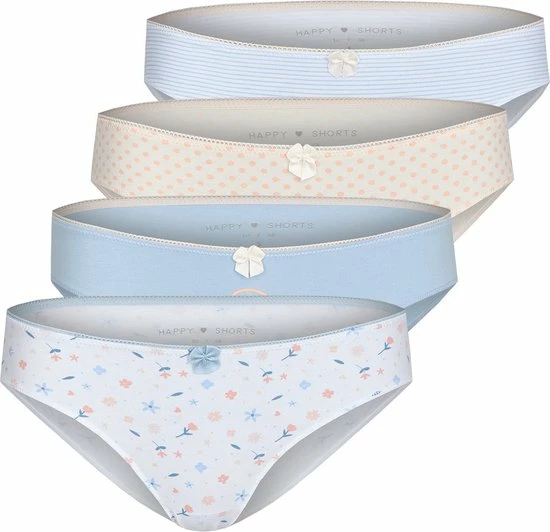 Happy Shorts dames voorjaars/zomer special. Voordeel pack van 4 dames slips verpakt in een leuke geschenkverpakking.
