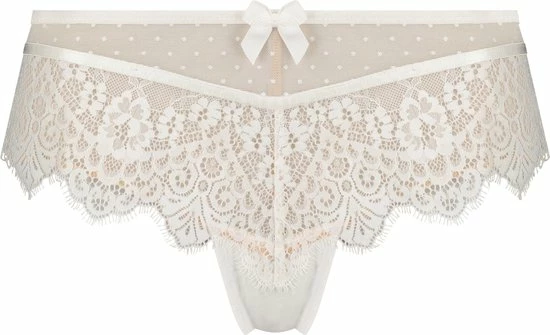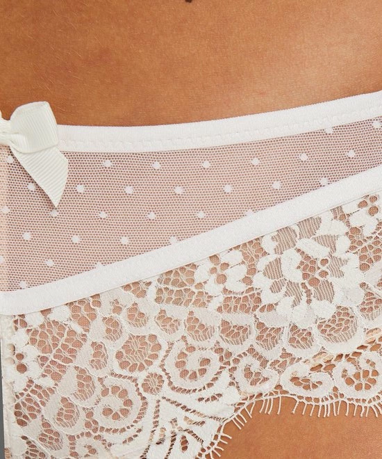 Deze brazilian zal super mooi rondom je billen zitten! Deze leuke brazilian is afgewerkt met kant en een doorschijnende stof waar leuke dots in zijn verwerkt.
