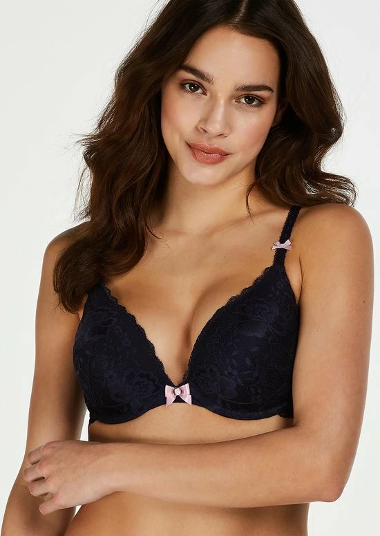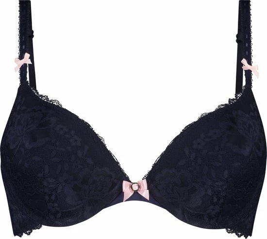 Deze voorgevormde beugel bh is mooi afgewerkt met kant in een bloemenmotief. Het push-up effect zorgt voor een optisch grotere cupmaat. Combineer met een bijpassende slip voor een complete look!