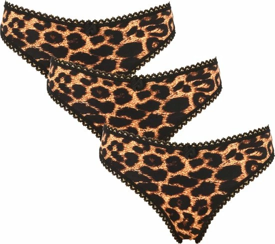 3-pack Dames string met animal print , lingerie string in 92% polyamide en 8% elastaan met katoenen kruisje.