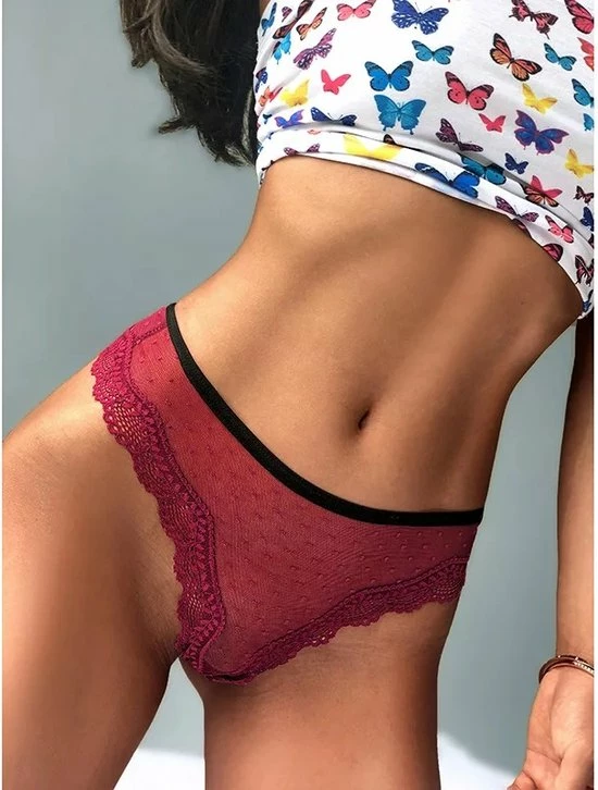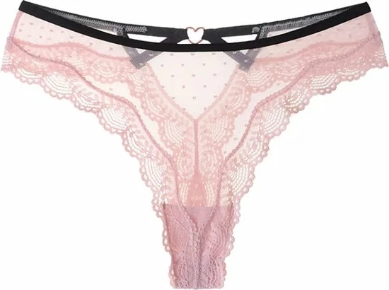 Deze string is uitgevoerd in semi-transparant kant in een Hollow out motief met een solid patronnen. Aan de achterzijde is de string afgewerkt met een sierlijk hartje embleem. Combineer de slip met de bijpassende bh en maak je set compleet!