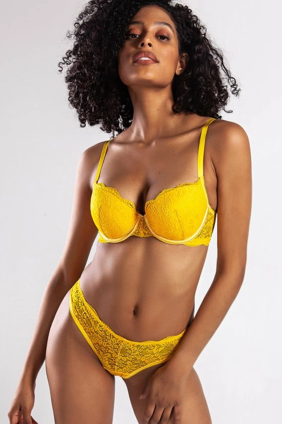 Met de Colors Push-up BH heb je binnen no-time een sensueel decolletΓ©. De BH straalt pure vrouwelijkheid uit door de kanten afwerking over de gehele cups. Afgemaakt met een lief steentje tussen de cups. Maak de look helemaal compleet met een passende undie uit dezelfde collectie. Bh-dames met beugel