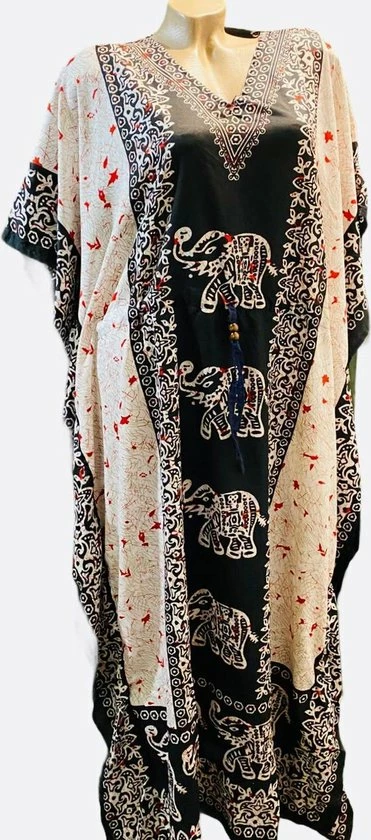 Een heel mooie kaftan met prachtige opdrukken en een aantrekkoord voor jong en oud. De kaftan draagt heel luchtig en zeer comfortabel. Het materiaal van de kaftan voelt ook lekker aan en is van 100% viscose. De lengte van de kaftan is 130cm lang en 82cm breedt. De maat valt naar 36-50. Wasbaar op 30 graden. Of met de handwas.