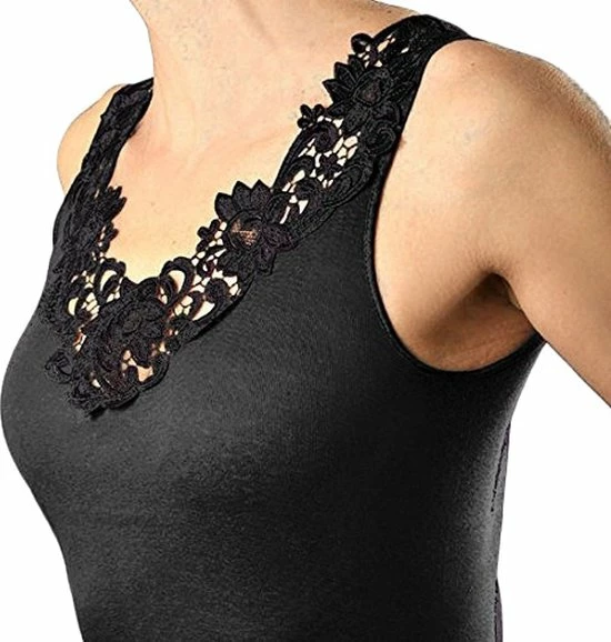 100% katoenen hemdje, brede schouderbanden met een afwerking van mooie brede kant
