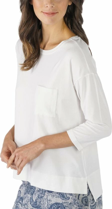 De Mey Night2Day serie bestaat uit casual kleding om lekker in te relaxen. Dit leuke shirt is goed te combineren met de verschillende loungebroeken van Mey. De mooie halslijn en de iets langere achterkant geven dit shirt een net iets andere uitstraling. De Katoen-Modalmix maakt dat het shirt comfortabel, licht en zacht aanvoelt op de huid.