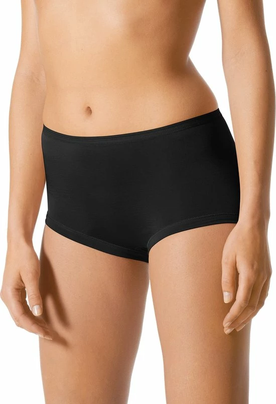 Zijdezachte hipster uit de Mey Lights Basics collectie. De hipster heeft een heel kort pijpje. Door de materiaalmix met Katoen en Viscose voelt deze slip aan als zijde. De licht glanzende buitenkant geeft de hipster een chique uitstraling. De zachte niet knellende elastische randjes om de beenopening dragen bij aan een prettige pasvorm.