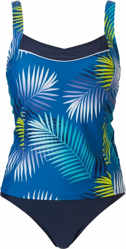 Deze tankiniset van Pastunette Beach heeft een geweldige pasvorm en een mooie print van uitvergrote bladeren in verschillende tropische kleuren.