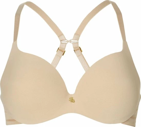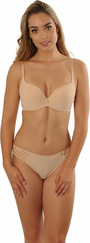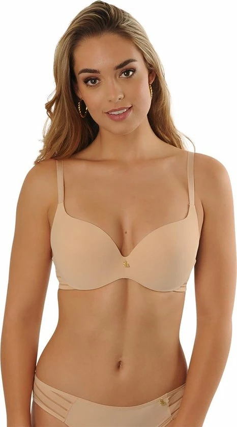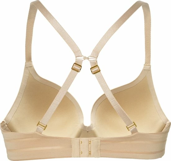 De Amelia lichte push-up bh heeft een nude gestreept patroon over de gehele bh. De bandjes van de bh kan je gekruist dragen en langs je nek als een halter. Door de vorm van de bh is de bh onzichtbaar onder een T-shirt.