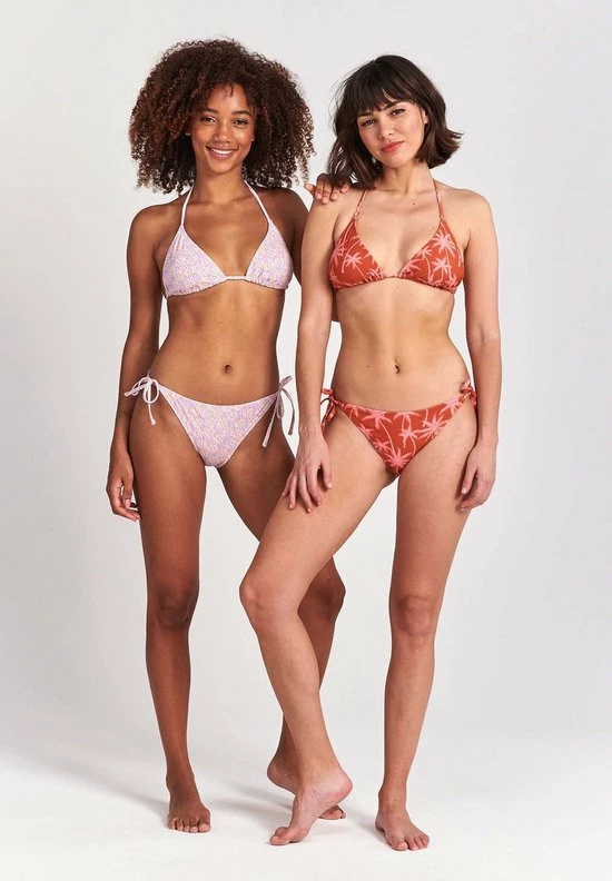 Have you ever watched the sunrise on the beach while underneath palm trees? Because wearing the triangle Liz bikini in our unique Vacation Palm pattern is basically the same experience. This piece has a knitted back closure, adjustable straps, removable padding, a comfortable non-wired top and adjustable ties on the brief.