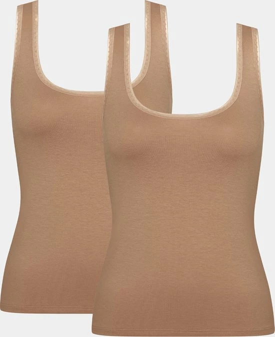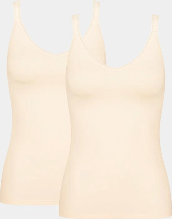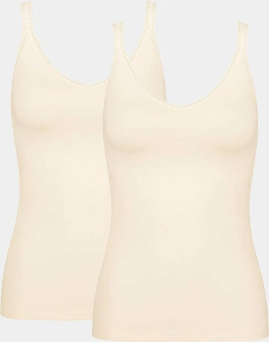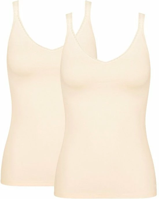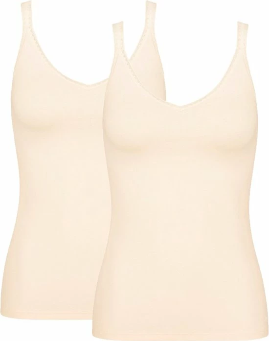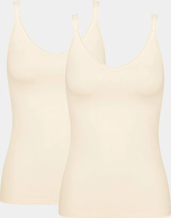 Leg de perfecte basis onder al je outfits met de hemden uit dit 2-pack van Sloggi! De set bestaat uit twee beige tops. Door de katoenen stof met stretch dragen de tops zeer comfortabel en vormen ze zich mooi om jouw lichaam. De tops hebben daarnaast een diepuitgesneden hals en mooi afgewerkte bandjes. De artikelen uit de GO serie voor dames zijn gemaakt van organisch katoen en dus ook nog eens goed voor het milieu!