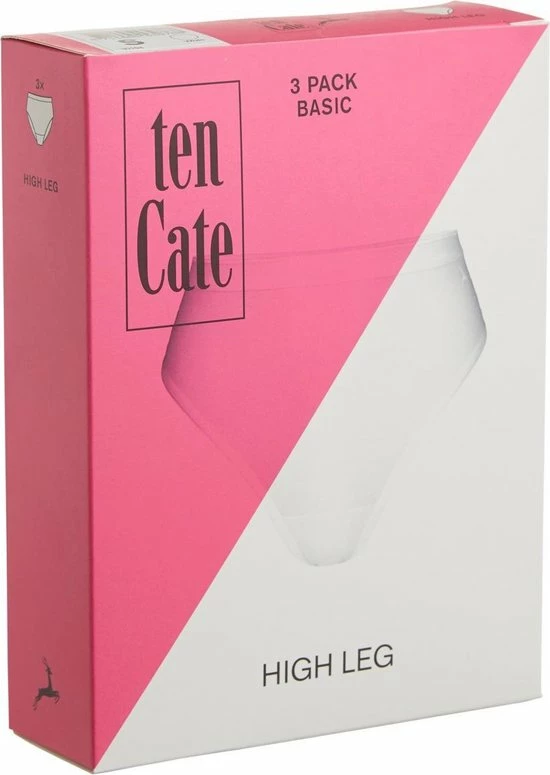 Dit Ten Cate artikel is een meerstuksverpakking van 2 + 1 gratis. Dit highleg model is een middelhoog tot hoog model en valt op de heup. De slips hebben een hoge beenuitsnede en geen zijnaden; daarom zijn ze extra comfortabel. De slips zijn voorzien van een zacht elastiek en een badstof kruisje voor extra draagcomfort. De slips hebben geen irriterend wasetiket, maar zijn voorzien van een geprinte wash seal en aan de voorzijde mooi afgewerkt met het hertje; het nieuwe icoon van Ten Cate. Deze 3-pack is verkrijgbaar in de uni kleuren wit, beige, ivoor en zwart.