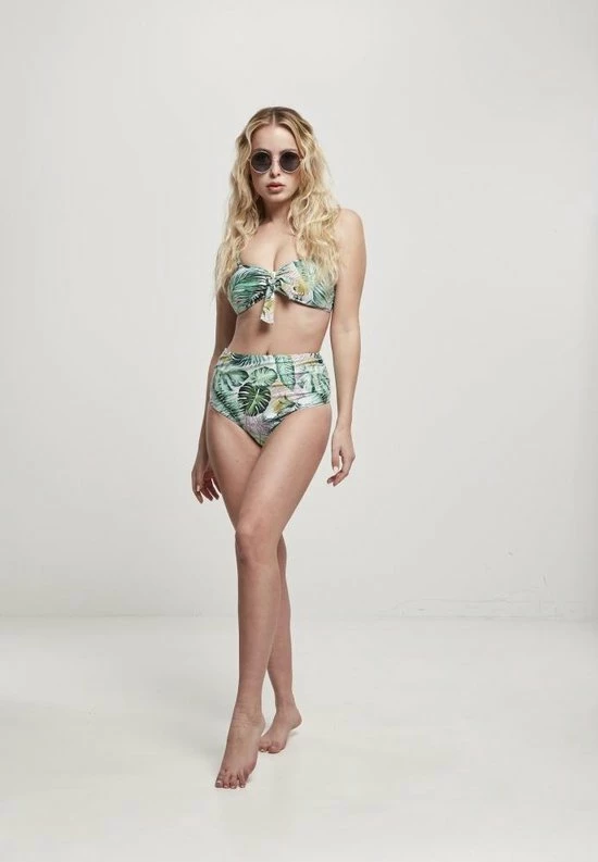 Urban Classics. Ladies High Waist Pattern Bikini leaf white
